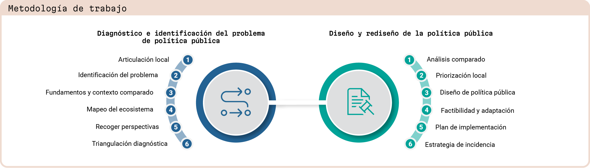 Diagnóstico de las necesidades en seguridad y justicia en LAC, seguido del diseño de propuestas de políticas públicas prioritarias y factibles. Estas se desarrollan a partir de prácticas reflexivas, de investigación y de innovación, situadas local y culturalmente y con un enfoque basado en los derechos humanos y una perspectiva interseccional.